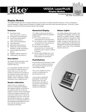 Datasheet for the Fike Display Module, published in 1998. Document No: 17921, Rev: 1. Models 68-018 and 68-019. Product features, environmental operating limits, and compatibility data.