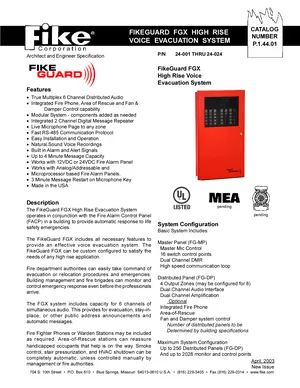 Datasheet for the FikeGuard FGX, published in 2003. Document No: P.1.44.01. 4 models including FG-MP, FG-DP, FGX-MP and 1 additional variants. Product features, environmental operating limits, and compatibility data.