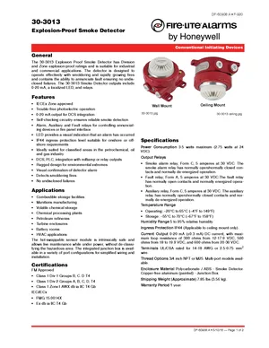 Datasheet for the Fire-Lite 30-3013, published in 2016. Document No: DF-60908, Rev: A. Model 30-3013. Detailed technical specifications, electrical ratings, and agency listings.