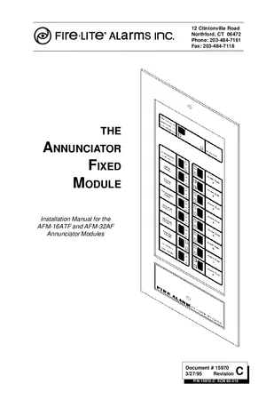 Installation and Operations Manual for the Fire-Lite AFM-16ATF and AFM-32AF, published in 1995. Document No: 15970, Rev: C. 18 models including AFM-16ATF, AFM-32AF, ABS-1F and 15 additional variants. System installation procedures and daily operating instructions.