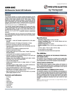 Datasheet for the Fire-Lite ANN-80C, published in 2018. Document No: DF-60676, Rev: A2. Models ANN-80C, ANN-SB80KIT and ANN-SB80KIT-R. Product features, environmental operating limits, and compatibility data.