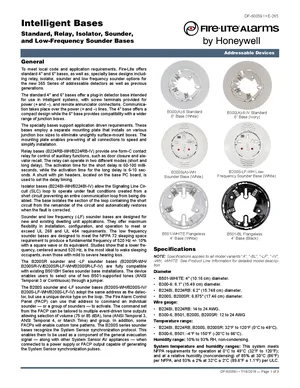 Datasheet for the Fire-Lite Intelligent Bases, published in 2018. Document No: DF-60059, Rev: I. 29 models including B300-6, B300A-6, B300-6-BP and 26 additional variants. Detailed technical specifications, electrical ratings, and agency listings.