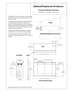 Installation Manual for the Fire-Lite BB-55 Battery Box, published in 2001. Document No: 50295, Rev: B. Model BB-55. Physical installation guide, backbox dimensions, and cabling specifications.