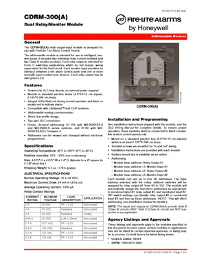 Datasheet for the Fire-Lite CDRM-300, published in 2012. Document No: DF-60713, Rev: A. Models CDRM-300, CDRM-300A and SMB500. Engineering specifications, wiring diagrams, and mounting dimensions.