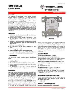 Datasheet for the Fire-Lite CMF-300, published in 2010. Document No: df-52130, Rev: B2. 4 models including CMF-300, CMF-300A, SMB500 and 1 additional variants. Detailed technical specifications, electrical ratings, and agency listings.