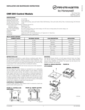 Installation Manual for the Fire-Lite CMF-300, published in 2013. Document No: I56-3650-006. Model CMF-300. Physical installation guide, backbox dimensions, and cabling specifications.