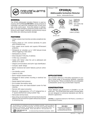 Datasheet for the Fire-Lite CP300, published in 1997. Document No: DF-51311. Models CP300, CP300A and RA400Z. Detailed technical specifications, electrical ratings, and agency listings.