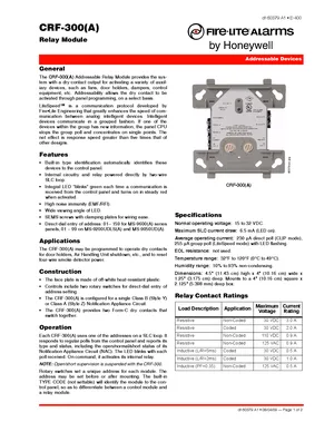 Datasheet for the Fire-Lite CRF-300, published in 2009. Document No: df-60379, Rev: A1. Models CRF-300, CRF-300A and SMB500. Engineering specifications, wiring diagrams, and mounting dimensions.