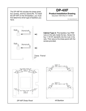 Installation Manual for the Fire-Lite DP-4XF, published in 1992. Document No: 15619, Rev: A. Model DP-4XF. Physical installation guide, backbox dimensions, and cabling specifications.