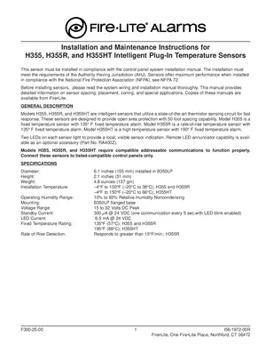 Installation Manual for the Fire-Lite H355, H355R, and H355HT, published in 2002. Document No: I56-1972-00R, Rev: 00R. 5 models including H355, H355R, H355HT and 2 additional variants. Hardware installation, terminal connections, and environmental requirements.