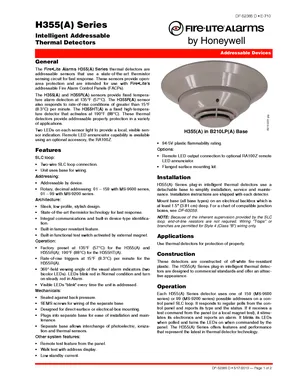 Datasheet for the Fire-Lite H355 Series, published in 2013. Document No: DF-52385, Rev: D. 29 models including H355, H355A, H355R and 26 additional variants. Engineering specifications, wiring diagrams, and mounting dimensions.