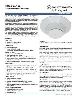 Datasheet for the Fire-Lite H365 Series, published in 2019. Document No: DF-61011, Rev: C. 53 models including H365, H365A, H365R and 50 additional variants. Product features, environmental operating limits, and compatibility data.