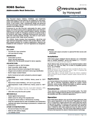 Datasheet for the Fire-Lite H365 Series Detectors, published in 2019. Document No: DF-61011, Rev: B. 54 models including H365, H365A, H365-IV and 51 additional variants. Engineering specifications, wiring diagrams, and mounting dimensions.