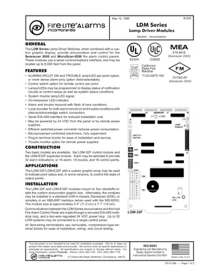 Datasheet for the Fire-Lite LDM Series Lamp Driver Modules, published in 1998. Document No: DF-51384, Rev: B-300. Models LDM-32F and LDM-E32F. Detailed technical specifications, electrical ratings, and agency listings.