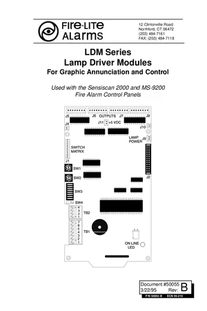 Installation, Operations, and Programming Manual for the Fire-Lite LDM Series Modules, published in 1995. Document No: 50055, Rev: B. Models LDM-32F and LDM-E32F. Complete system installation, daily operation procedures, and detailed programming configurations.