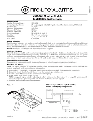 Installation Manual for the Fire-Lite MMF-301, published in 2006. Document No: I56-1193-003, Rev: 003. Models MMF-301 and M301. Physical installation guide, backbox dimensions, and cabling specifications.