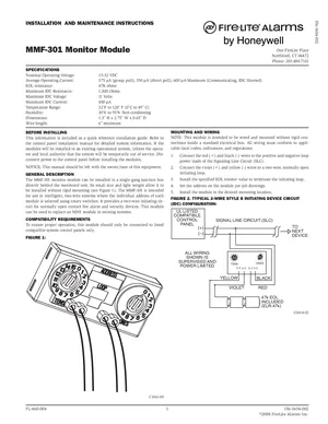 Installation Manual for the Fire-Lite MMF-301, published in 2008. Document No: I56-3654-002, Rev: 002. Models MMF-301 and M301. Hardware installation, terminal connections, and environmental requirements.