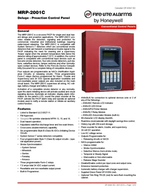 Datasheet for the Fire-Lite MRP-2001C Control Panel, published in 2016. Document No: DF-60441, Rev: B2. 20 models including MRP-2001C, ANN-80C, ANN-I/O and 17 additional variants. Engineering specifications, wiring diagrams, and mounting dimensions.