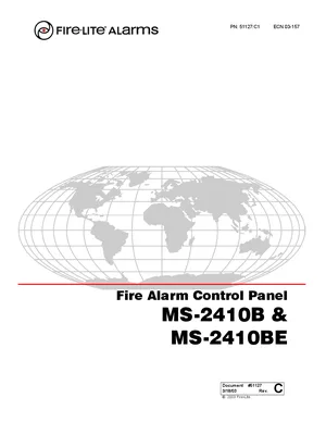 Installation, Operations, and Programming Manual for the Fire-Lite MS-2410B, published in 2003. Document No: 51127, Rev: C1. 16 models including MS-2410B, MS-2410BE, XRM-24 and 13 additional variants. Hardware installation, alarm/fault management, and advanced system configuration.