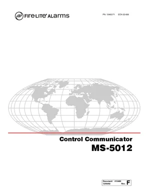 Installation, Operations, and Programming Manual for the Fire-Lite MS-5012, published in 2002. Document No: 15465, Rev: F1. 4 models including MS-5012, DP-5012, ADM-12 and 1 additional variants. Hardware installation, alarm/fault management, and advanced system configuration.