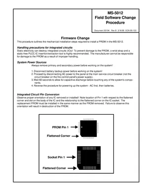 Manual for the Fire-Lite MS-5012 Field Software Change Procedure, published in 1995. Document No: 50194, Rev: B. Model MS-5012. Capabilities, specifications summary, and usage notes.