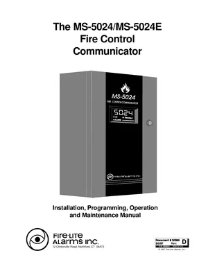 Installation, Operations, and Programming Manual for the Fire-Lite MS-5024, published in 1997. Document No: 50066, Rev: D. 8 models including MS-5024, MS-5024E, DP-5024 and 5 additional variants. Mounting and wiring instructions, user operating guides, and system software setup.