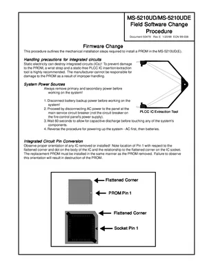 Manual for the Fire-Lite MS-5210UD Field Software Change Procedure, published in 1999. Document No: 50479, Rev: E. Models MS-5210UD and MS-5210UDE. Capabilities, specifications summary, and usage notes.