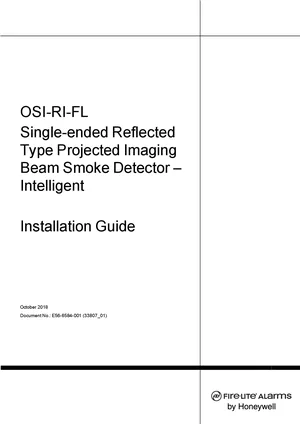 Installation Manual for the Fire-Lite OSI-RI-FL, published in 2018. Document No: E56-6584-001, Rev: 001. 5 models including OSI-RI-FL, 6500MMK, BEAMHKR and 2 additional variants. Mounting instructions, wiring diagrams, and system power-up procedures.