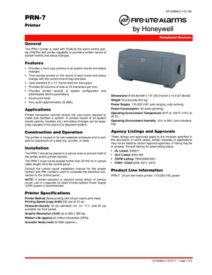 Datasheet for the Fire-Lite PRN-7, published in 2017. Document No: DF-60898-C, Rev: C. Model PRN-7. Detailed technical specifications, electrical ratings, and agency listings.