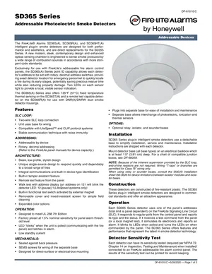 Datasheet for the Fire-Lite SD365 Series, published in 2020. Document No: DF-61010, Rev: C. 52 models including SD365, SD365A, SD365-IV and 49 additional variants. Engineering specifications, wiring diagrams, and mounting dimensions.