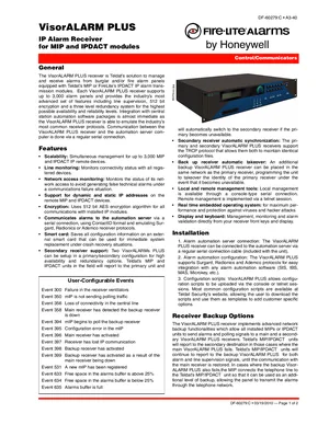 Datasheet for the Fire-Lite VisorALARM PLUS, published in 2010. Document No: DF-60279, Rev: C. 4 models including VisorALARM PLUS, MIP, IPDACT and 1 additional variants. Engineering specifications, wiring diagrams, and mounting dimensions.