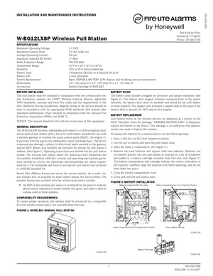 Installation Manual for the Fire-Lite W-BG12LXSP, published in 2017. Document No: I56-6565-000, Rev: 000. Models W-BG12LXSP and W-BATCART. Mounting instructions, wiring diagrams, and system power-up procedures.