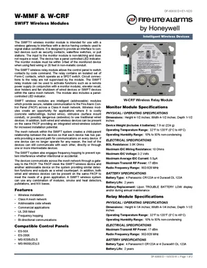Datasheet for the Fire-Lite W-MMF & W-CRF, published in 2018. Document No: DF-60830, Rev: D. 22 models including W-MMF, W-CRF, ES-50X and 19 additional variants. Product features, environmental operating limits, and compatibility data.