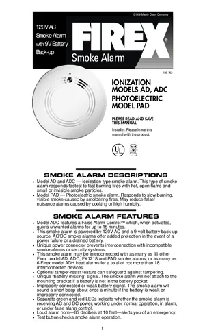 Installation and Operations Manual for the FireX AD, ADC and PAD, published in 1999. Document No: 110-762. 5 models including AD, ADC, PAD and 2 additional variants. System installation procedures and daily operating instructions.