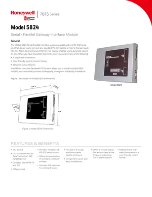 Datasheet for the Gamewell FCI 5824, published in 2017. Document No: 9021-601008, Rev: A. Model 5824. Product features, environmental operating limits, and compatibility data.