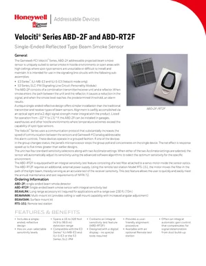 Datasheet for the Gamewell FCI ABD-2F and ABD-RT2F, published in 2017. Document No: 9020-0623, Rev: G. 6 models including ABD-2F, ABD-RT2F, BEAMLRK and 3 additional variants. Detailed technical specifications, electrical ratings, and agency listings.