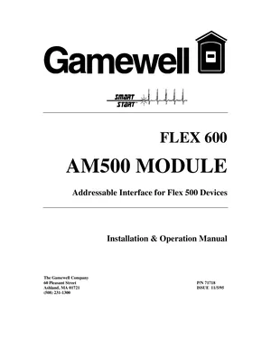 Installation, Operations, and Programming Manual for the Gamewell FCI AM500, published in 1995. Document No: 71718. Models AM500 and AM500-SDA. Hardware installation, alarm/fault management, and advanced system configuration.