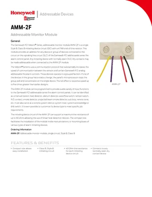 Datasheet for the Gamewell FCI AMM-2F, published in 2017. Document No: 9020-0626, Rev: F. Model AMM-2F. Detailed technical specifications, electrical ratings, and agency listings.