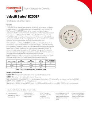 Datasheet for the Gamewell FCI B200SR Series, published in 2019. Document No: 9021-60553, Rev: H. 4 models including B200SR, B200SR-WH, B200SR-IV and 1 additional variants. Product features, environmental operating limits, and compatibility data.