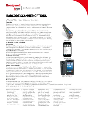 Datasheet for the Gamewell FCI Barcode Scanner Options, published in 2017. Document No: 9021-60808, Rev: D. 4 models including SCANNER-BT, SCANNER-5, SCANNER-TOUCH and 1 additional variants. Engineering specifications, wiring diagrams, and mounting dimensions.
