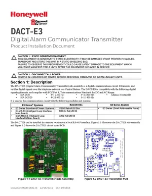 Installation Manual for the Gamewell FCI DACT-E3, published in 2020. Document No: 9000-0581, Rev: J6. 45 models including DACT-E3, ILI-MB-E3, ILI95-MB-E3 and 42 additional variants. Hardware installation, terminal connections, and environmental requirements.