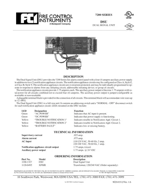 Datasheet for the Gamewell FCI DSU, published in 1997. Document No: 9020-0312, Rev: 1.6. Models DSU and XFMR. Product features, environmental operating limits, and compatibility data.