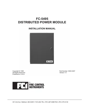 Installation Manual for the Gamewell FCI FC-5495, published in 1999. Document No: 9000-0487, Rev: 1.0. Model FC-5495. Mounting instructions, wiring diagrams, and system power-up procedures.
