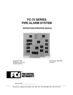 Installation and Operations Manual for the Gamewell FCI FC-72 Series, published in 1988. Document No: 9000-0007, Rev: Version 5.1. 32 models including FC-72, FC-72-1, BMFC-6 and 29 additional variants. System installation procedures and daily operating instructions.