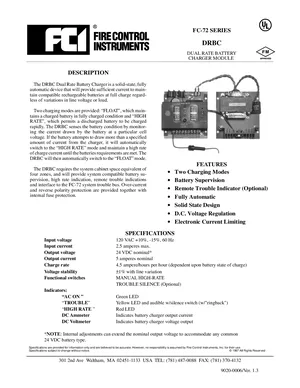 Datasheet for the Gamewell FCI FC-72 SERIES DRBC, published in 1997. Document No: 9020-0006, Rev: Ver. 1.3. Models DRBC and FC-72. Product features, environmental operating limits, and compatibility data.