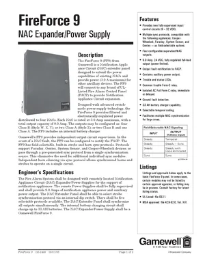 Datasheet for the Gamewell FCI FireForce 9, published in 2006. Document No: CS-2499. 6 models including FireForce 9, FF9, BAT-1270 and 3 additional variants. Detailed technical specifications, electrical ratings, and agency listings.