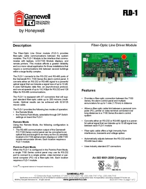 Datasheet for the Gamewell FCI FLD-1, published in 2009. Document No: 9020-0517, Rev: E. 5 models including FLD-1, 1100-0429, 7100 Series and 2 additional variants. Detailed technical specifications, electrical ratings, and agency listings.