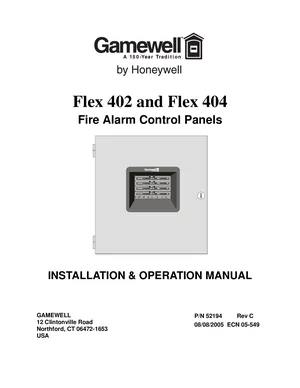 Installation, Operations, and Programming Manual for the Gamewell FCI Flex 402 and Flex 404, published in 2005. Document No: 52194, Rev: C. 12 models including Flex 402, Flex 404, CAC-4 and 9 additional variants. Hardware installation, alarm/fault management, and advanced system configuration.