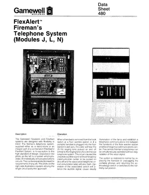 Datasheet for the Gamewell FCI FlexAlert Fireman's Telephone System, published in 1999. Document No: 480, Rev: 8/99. Models J, L and N. Detailed technical specifications, electrical ratings, and agency listings.