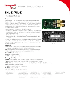 Datasheet for the Gamewell FCI FML-E3 and FSL-E3, published in 2019. Document No: 9021-60783, Rev: F. 7 models including FML-E3, FSL-E3, RPT-E3-UTP and 4 additional variants. Product features, environmental operating limits, and compatibility data.